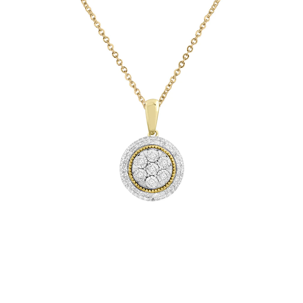Dress up your favourite necklace with this beautiful pendant featuring 77 diamonds, a total diamond weight of 0.15 carats in 9k yellow gold.