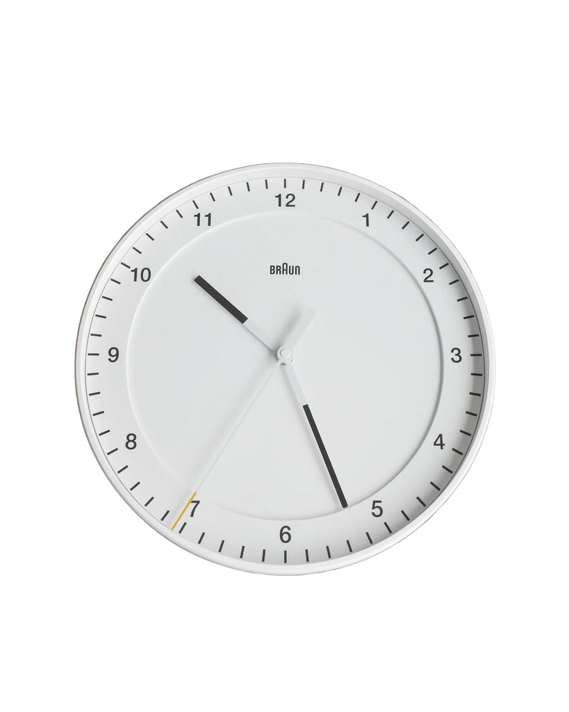 Not burdened with non-essentials. The BC17 Wall Clock features a large, easy to read dial layout and timeless design, honouring Ram's 10 principles. The clockwork is silent, the yellow tipped second hand floats in one continuous movement across the dial. No ticking - just time