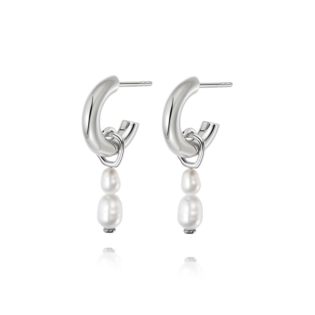 Make a sophisticated statement with these timeless hoops. Hand-crafted in 100% recycled sterling featuring a double baroque freshwater pearl drop. Luxury everyday style to treasure.
