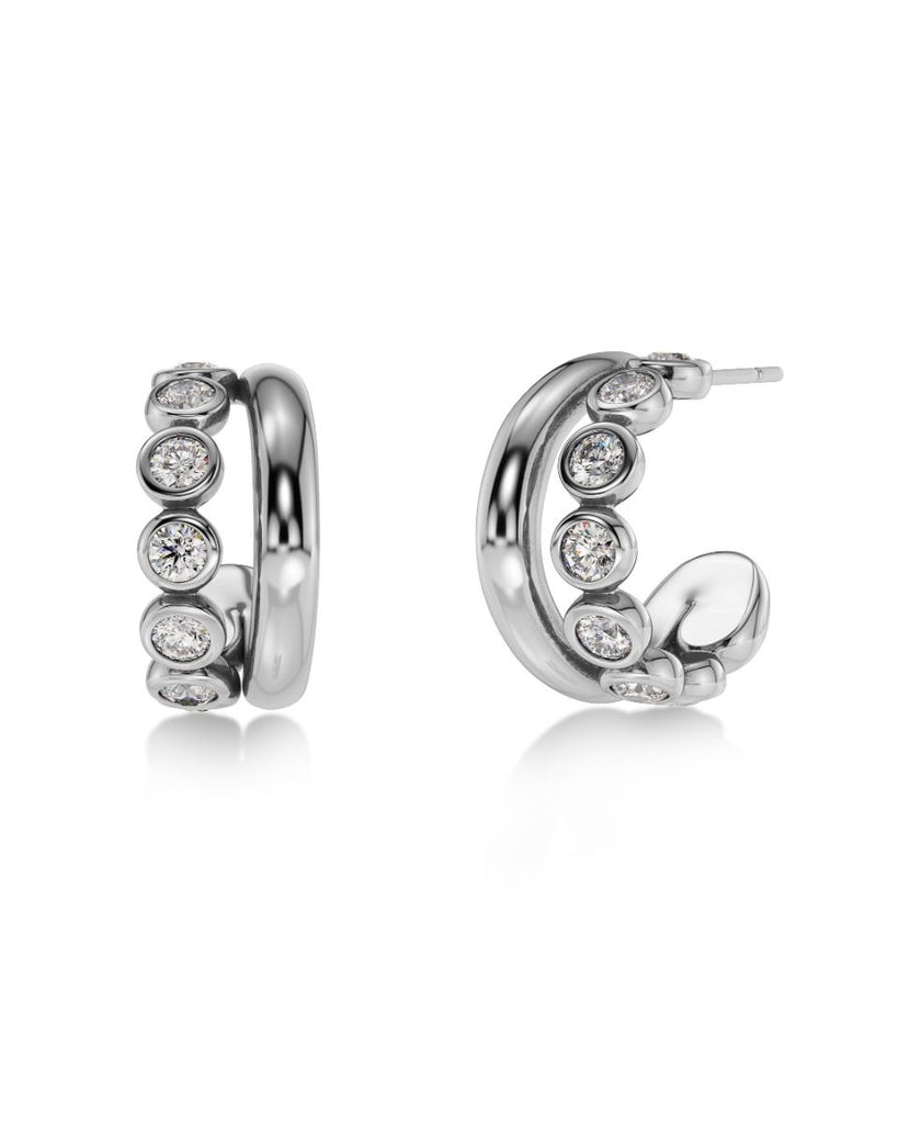 Grace is a line of classic jewellery with a modern twist. An überchic, easy-to-wear line that mixes simplicity with glamour, for those special occasions when only a touch of brilliance will do. Seen here in slightly larger hoops in shiny stainless steel with two bands, one with sparkling stones and one without, that look like two earrings when they are in place. Perfect to pair with the bangles or rings from the same line.
