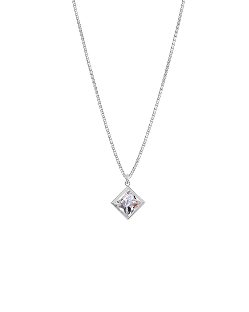 Size 13x13 mm, adjustable necklace lengths 45, 50, 55 cm. Cubic zirconia, shiny stainless steel. nickel safe. Water resistant.