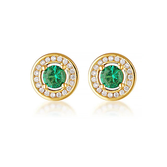 Georgini - Milestone Emerald Nano & White Cubic Zirconia Halo Earrings Gold