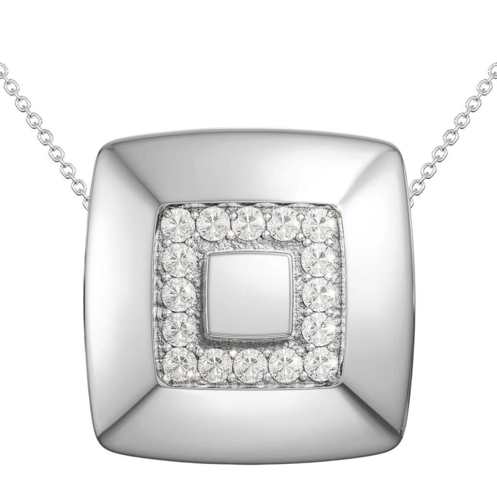 The Genesis features a solid design with an inner square of Diamonds (or cubic zirconias). With a large compartment this Pendant can hold a large note or other keepsake inside.