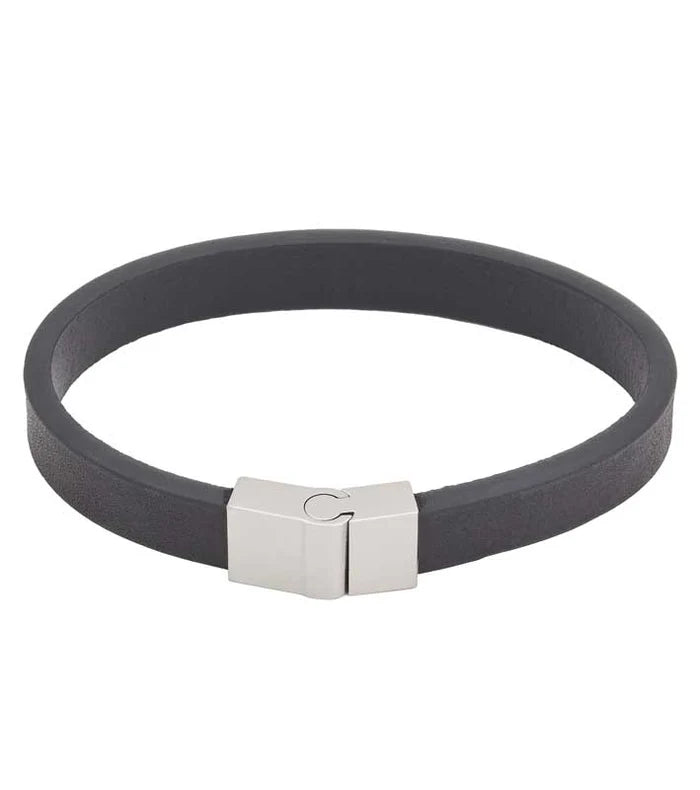 Classic men's bracelet in black leather with a stylish magnetic clasp in stainless steel. Lewis bracelet can be worn as is, or combined with several bracelets.