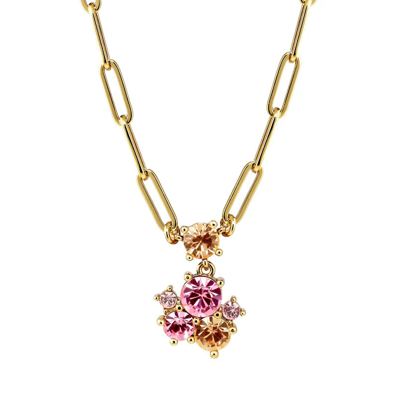 Elegant with a fresh, modern feel, the Tanzy necklace features a refined pendant composed of multiple facet-cut crystals in varying sizes. The mix of rose tones creates depth, colour and movement, making this necklace an effortless statement piece.